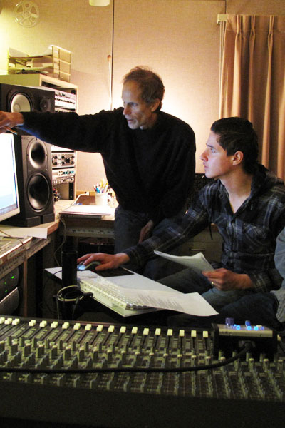| | Foster Student works on audio editing with the help of Jack Straw engineer Tom Stiles | This month, as part of National Poetry Month, KBCS Community Radio will broadcast the Stories of Arrival poems. We have also archived all of the students' poems on our web site.