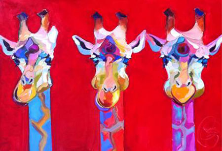 Bob Ransley, "Giraffe on Red", 36" x 48", Oil on
