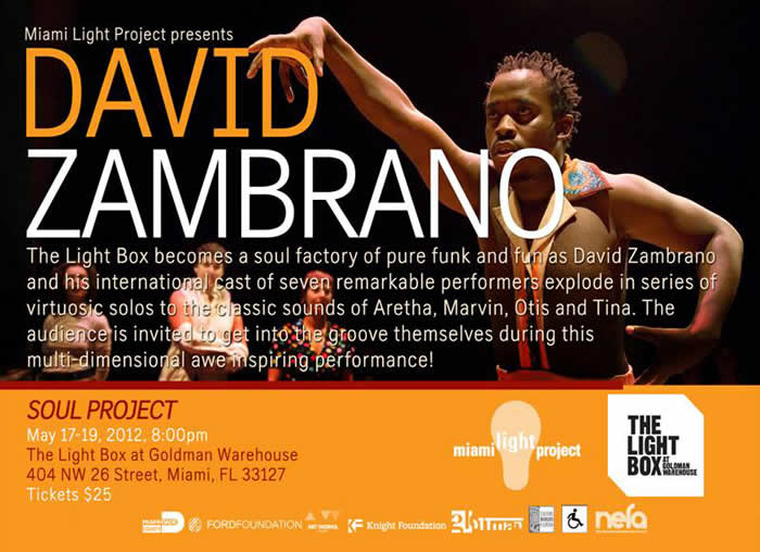 The Soul Project tour is winning raves from audiences all over the US; one colleague shared with us this email he received from one of his audience members: "Thanking you for bringing these great events to Milwaukee ... I'm not sure how many ways to say 'that was amazing' 'that was the best thing I've ever seen' 'that was a once-in-a-lifetime experience.' Truly, my entire family enjoyed the hell out of Zambrano and we talked about it all weekend long. I wrote on Twitter today that I'm quitting my job and joining his dance company."