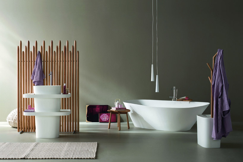 Warp molds, curves and distorts DuPont™ Corian® techno-surface to create all the elements of the bathroom system.