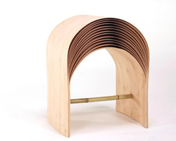 made from bamboo veneers, the stool fully flexes when in use, taking advantage of the material qualities.