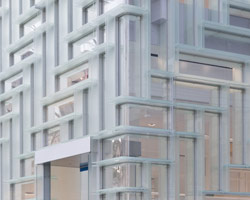 the transparent modular facade shows a contemporary evolution of coach's original wooden display shelves, allowing the merchandise to become the (read more)