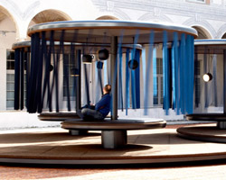 reminiscent of a carousel, the installation rotates slowly and silently as an allegorical interpretation of movement and contemplation.