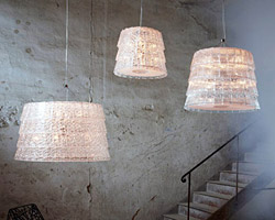the fashion designer has translated the softness of fabric--the way it ripples and folds--into a collection of glass chandeliers and a room divider (read more)