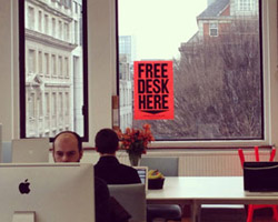 'free desk here' is a new initiative that offers graduates and freelancers a desk in a creative agency.