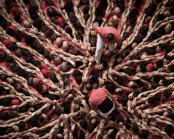 the images capture a unique aerial perspective of 'concurs de castells', the historical human tower competition.
